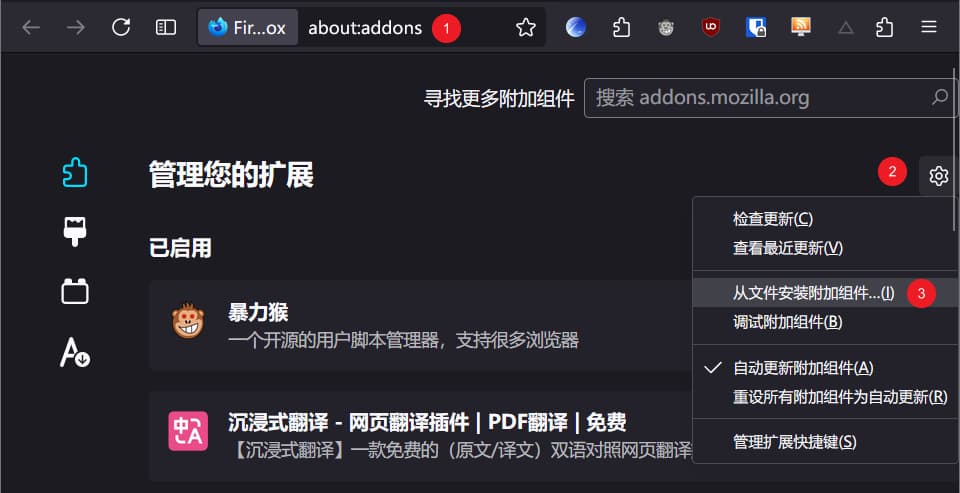 已签名的可以直接到附加组件管理器 about:addons(快捷键 Control + Shift + A)安装。