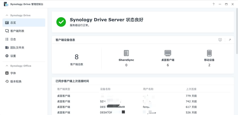 点击就跳转到【Synology Drive 管理控制台】窗口,没有什么实际信息可以查看