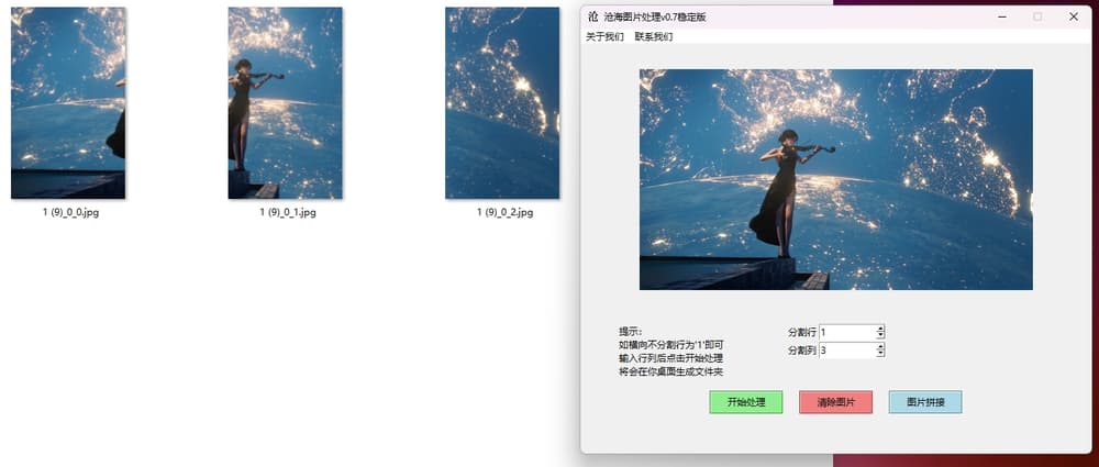 本软件在功能设计上力求简洁易用,旨在为用户提供高效、便捷的图片处理体验。我们相信,通过这款软件,您将能够轻松实现图片分割与拼接的需求,希望它能为您的工作和生活带来便利。