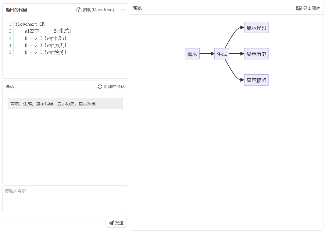 输入需求,调用GPTAPI生成mermaid格式的流程图;