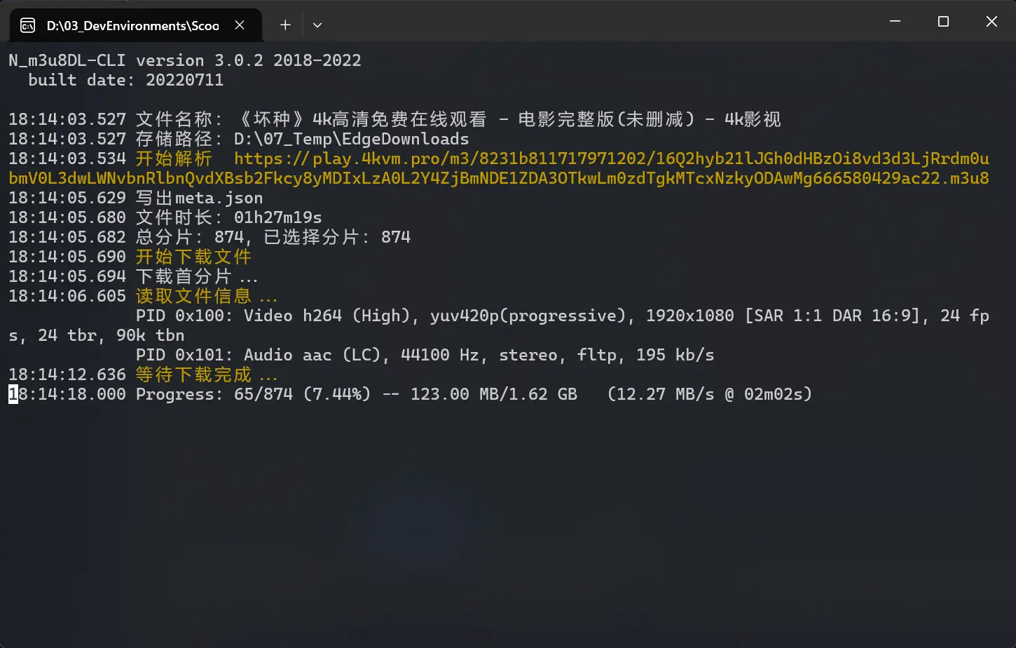 查询到一个m3u8文件,可是用分析文件下载均失败,不知道哪里出现问题,请问还有其他方法下载下来吗