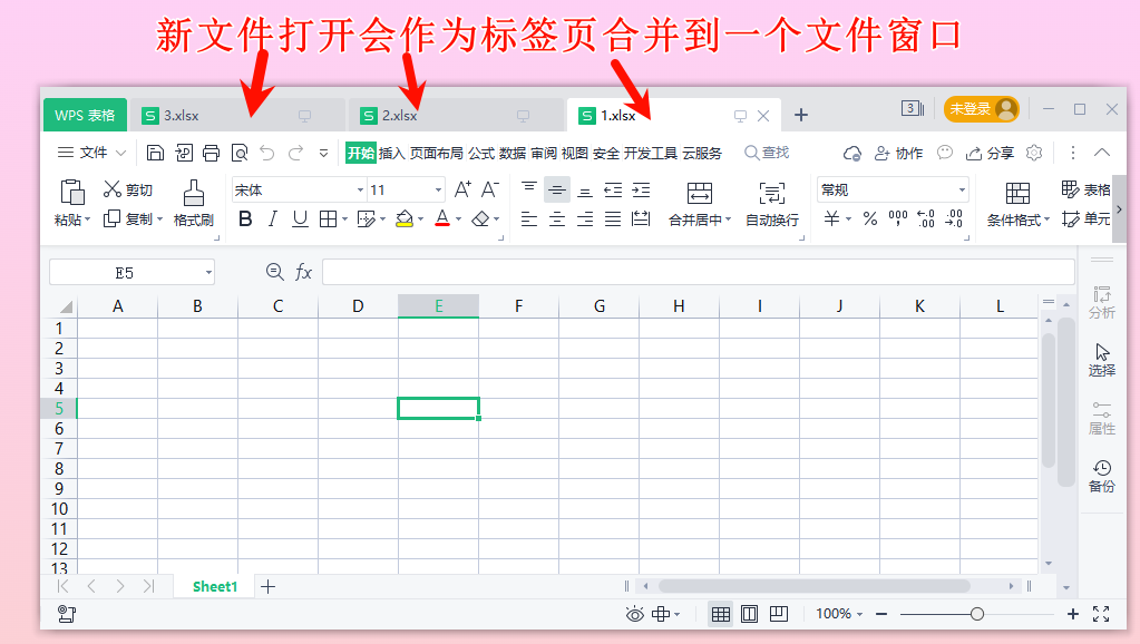如果电脑上已打开了一个WPS的.xlsx文件,再打开新的.xlsx文件的时候,新打开的.xlsx文件就会作为标签页合并到已打开的.xlsx文件窗口。