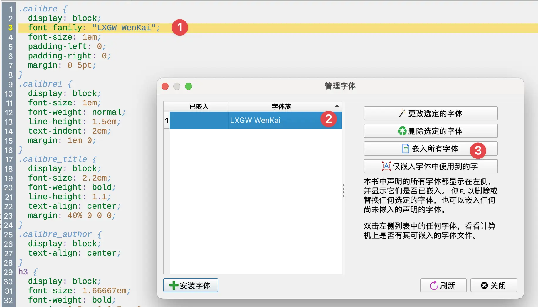 我用 Calibre,编辑电子书,修改 css,把字体设置为想要的字体,在字体管理里尝试安装字体,但是没成功过。是必须先把字体安装在电脑系统里么?