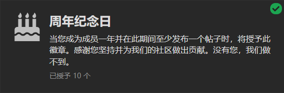 目前有且仅有五位大佬获得了10次周年纪念!
