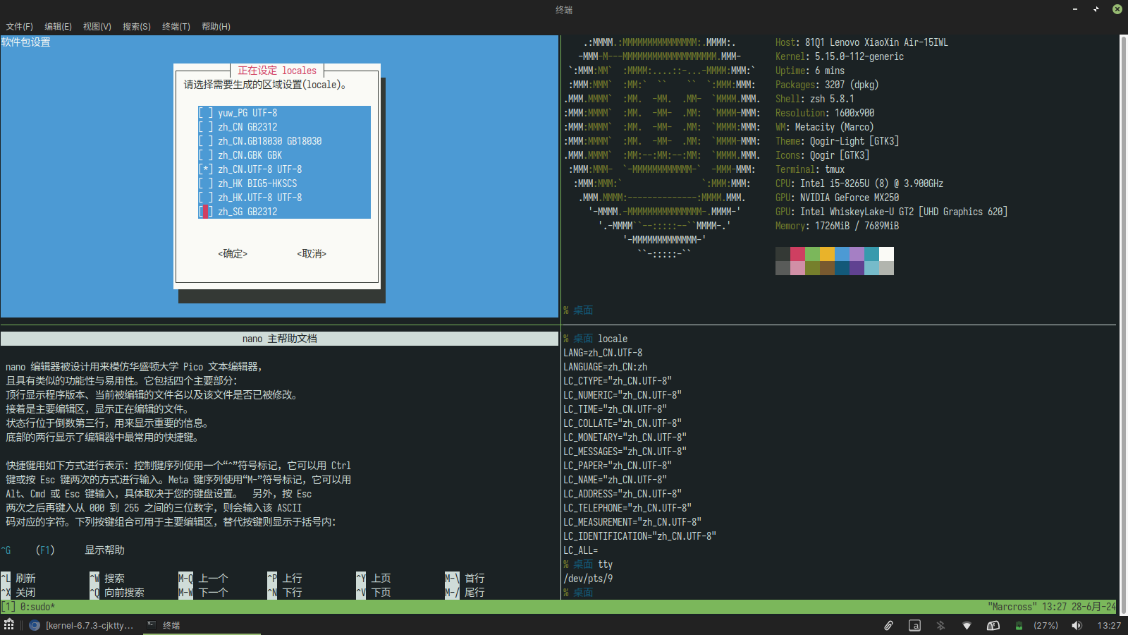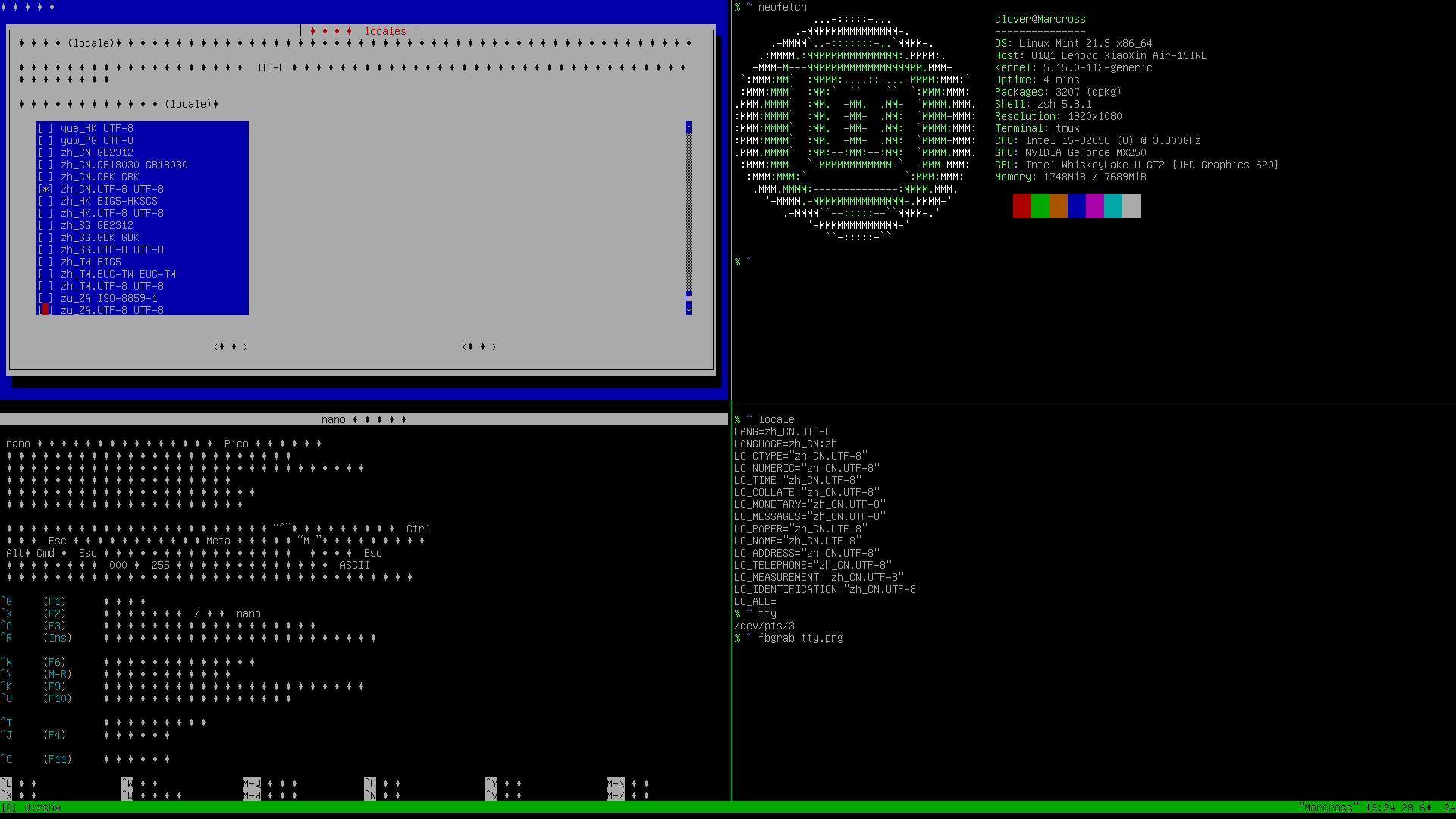 多谢您的建议!不过我按照您的操作,对 locales 进行了设置,但仍然无法在 tty 终端 中显示中文,目前我这边的情况如下图所示: