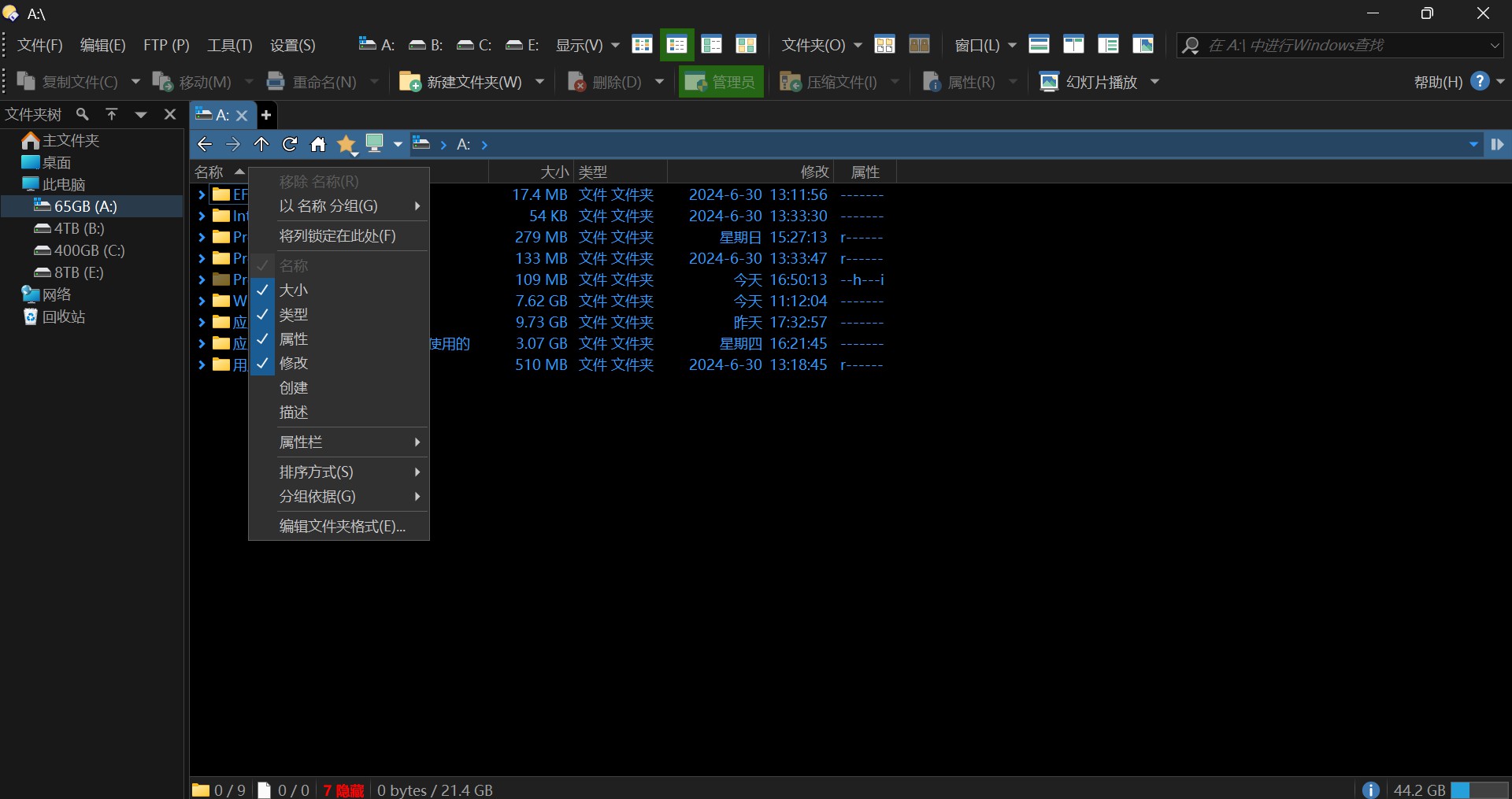 文件列表中能显示文件夹的大小。根据具体大小,自动使用KB、MB、GB。