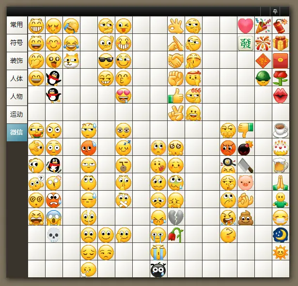 另外我还添加了一个微信表情界面,只适配微信聊天情境,你可以根据自己喜好重新排布,但不要删除(因为这是手工适配的,无法通过双击右键方法添加)