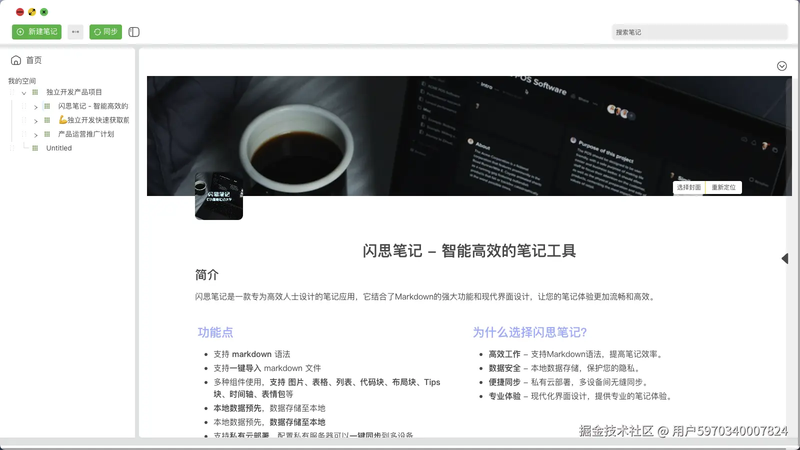 闪思笔记是一款专为高效人士设计的笔记应用,它结合了Markdown的强大功能和现代界面设计,让您的笔记体验更加流畅和高效。