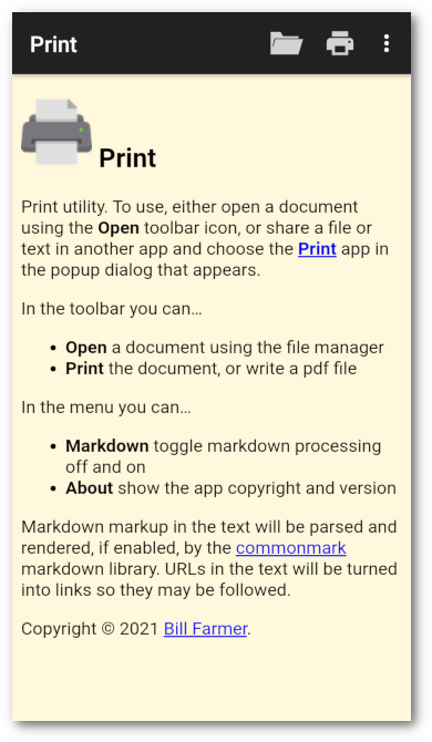 Print 是专为 Android 开发的打印工具,可以通过调用打印机执行打印任务,或者将文件转换成 PDF,支持 Markdown。