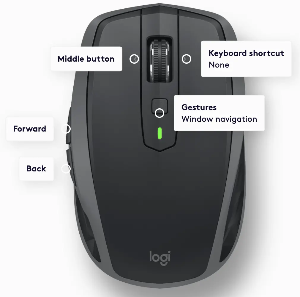 - 滚轮后方有一颗手势按键,可以自定义触发。