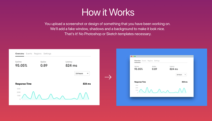 这是一个美化截图的网页工具。会给朴素的截图加上一个 GUI 窗口的外框,以及类似 macOS 自带截图那样的窗口外面一圈阴影(但是没有 macOS 的好看),还会给图片加上纯色背景。