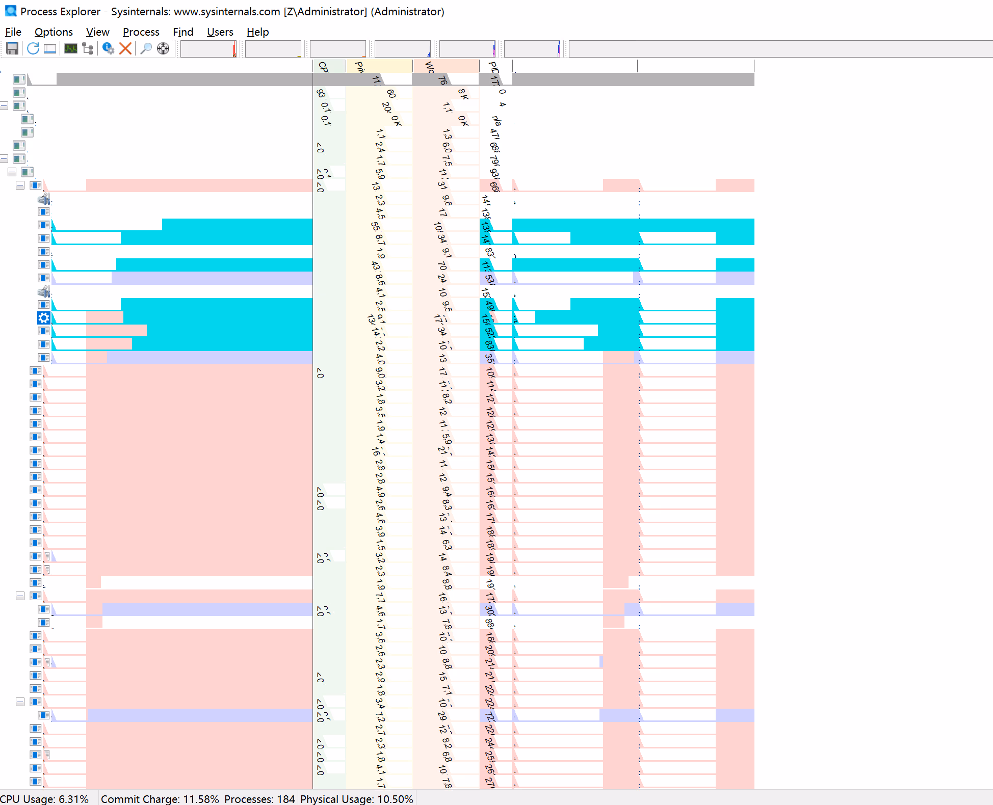 之前从未遇到这个问题,但今天用 uupdump.net 工具安装了新Windows10,Process Explorer 就变成这样了,似乎只有Process Explorer有这个问题。