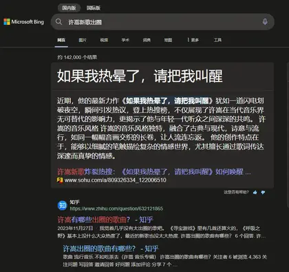 想知道许嵩最近有没有什么出圈的好听歌曲,结果: