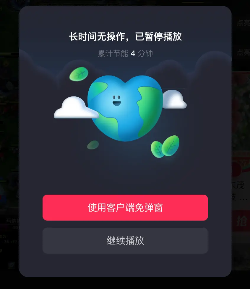 如果观众长时间不进行互动(此行为也被称为“黑听”),会被暂停播放,需要晃一下鼠标。