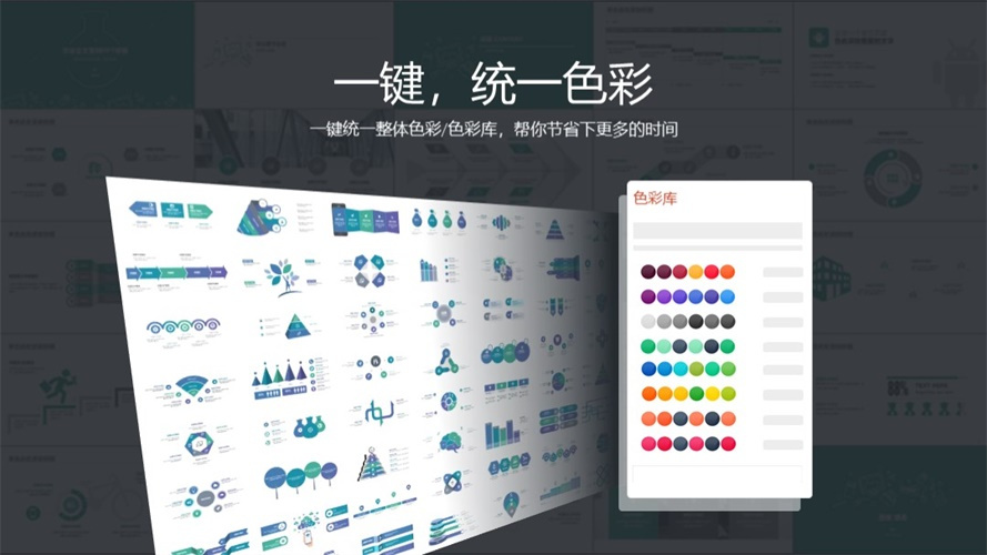 一键,统一全局色彩为主题色,再加色彩库,一键更换主题色,帮你节省下更多的时间。