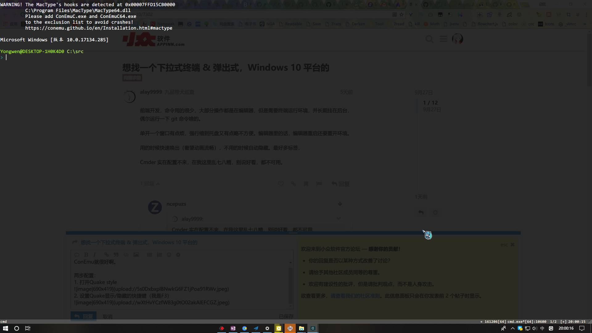 我可能是被 Cmder 坑了,直接下载一个 ConEmu,感觉它乖得很,试用几天再说
