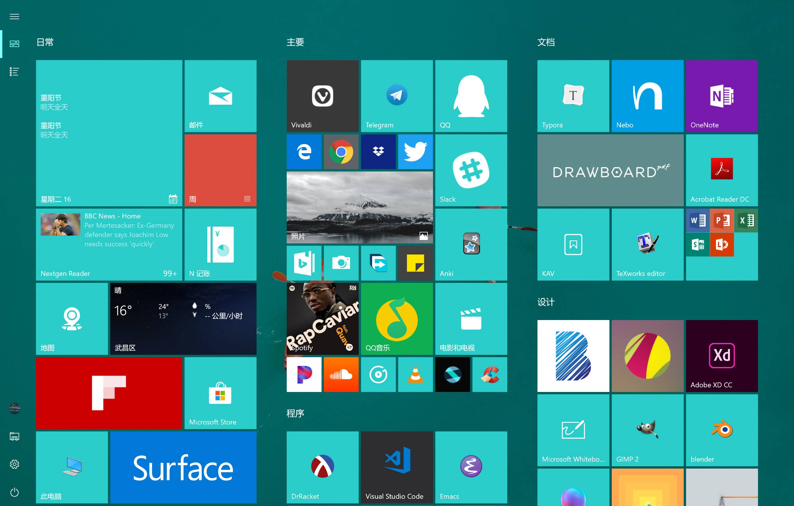 习惯了的话,这种全屏幕的开始菜单还是很方便的。把软件按类别整理好,现在这些软件的启动基本都是肌肉记忆了;而且桌面上的快捷方式也就是是个摆设,对我来说开始菜单就够了。