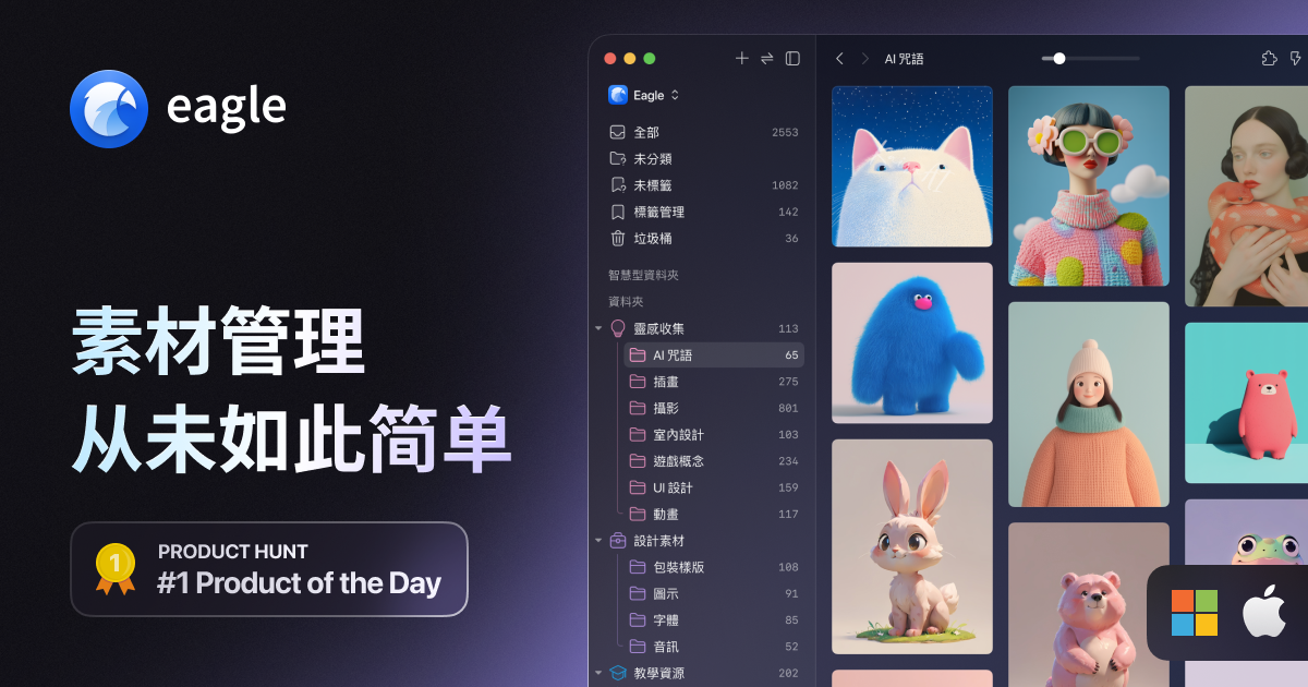 可见用户对 Eagle 的印象,并不是一个专业的“素材管理”软件,而是图片管理软件。
