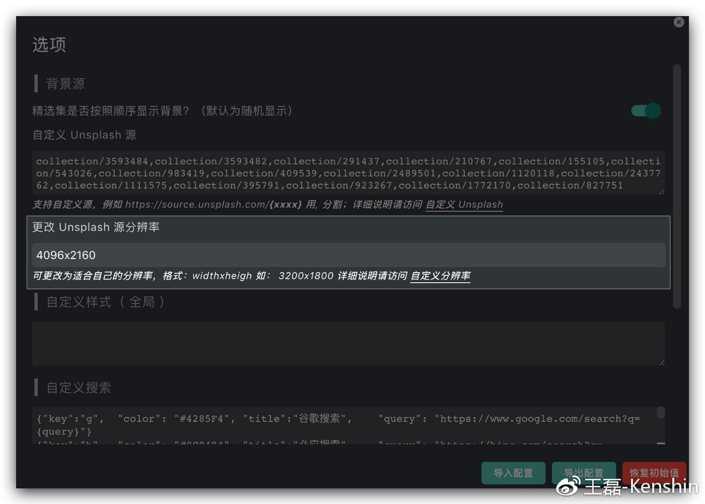 - 每次打开 New Tab 都有新背景出现的随机更换;