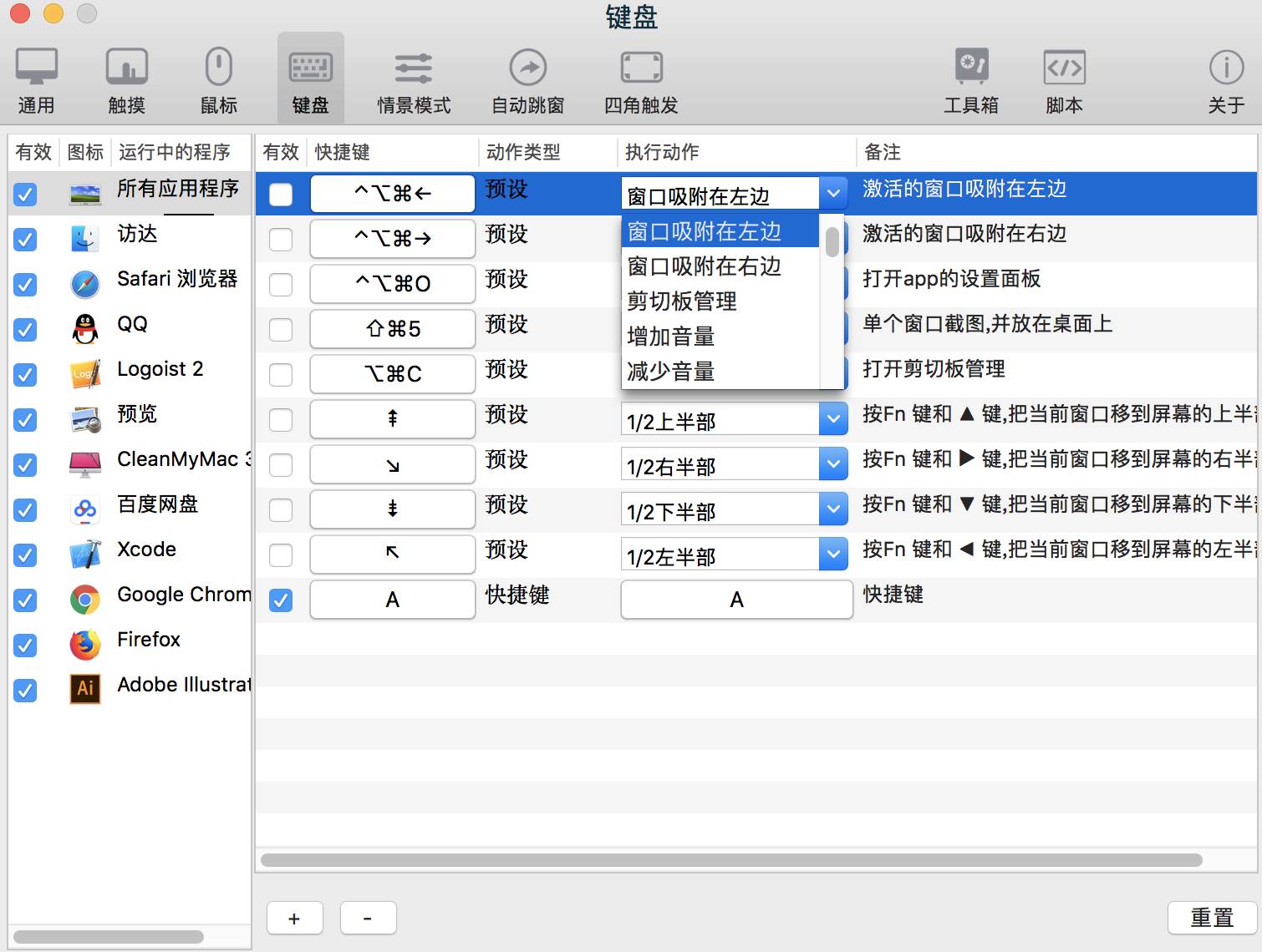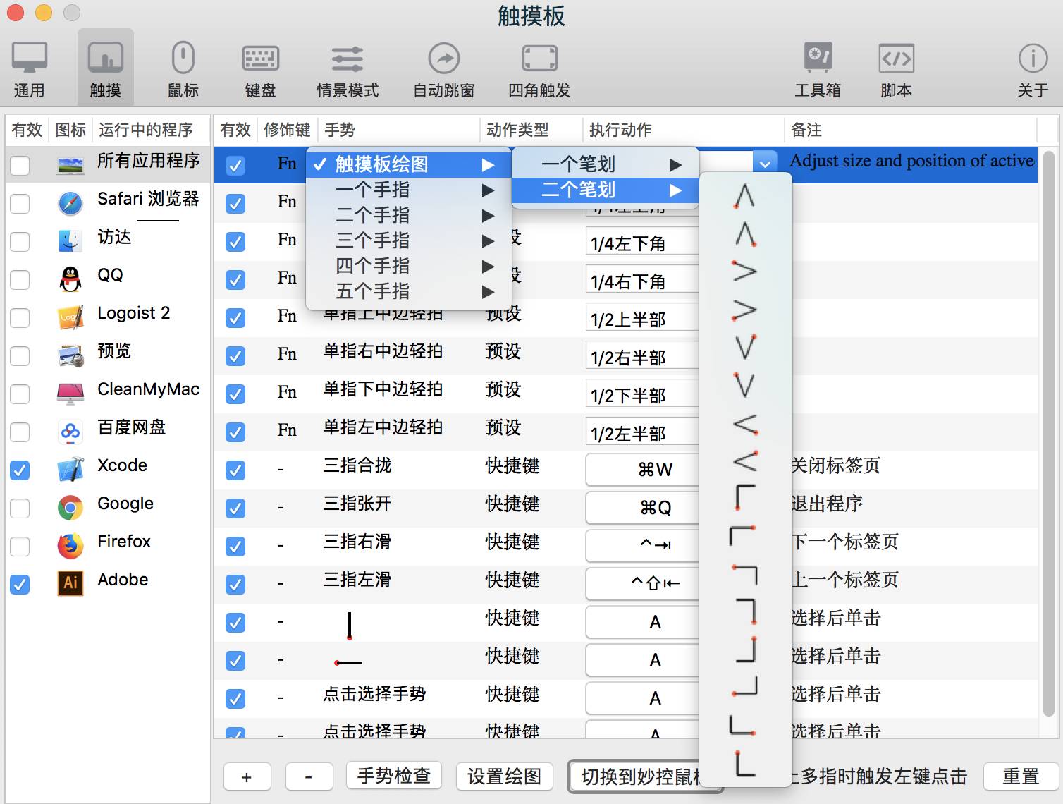 分享一个mac下的全局手势Better And Better(中文:越来越好) .国产,最主要是中文的,手势全部自定义…,与windows下的 WGestures有的一比.如果习惯用手势的可以试试.爽爽爽的.