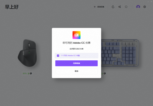 购买罗技 MX 设备即可免费获得一个月的 Adobe Creative Cloud 会籍。
