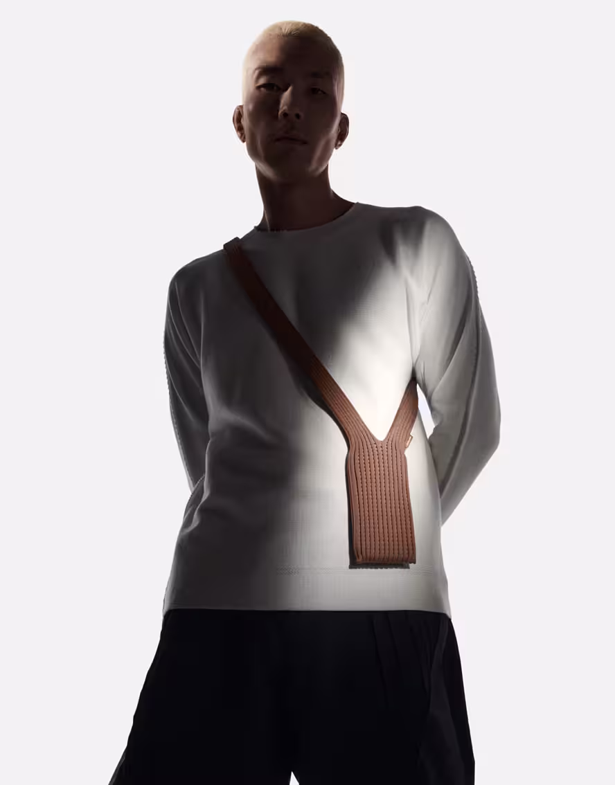 iPhone Pocket 源自 ISSEY MIYAKE 与 Apple 的合作,采用一体式三维编织构造,可容纳任意 iPhone。