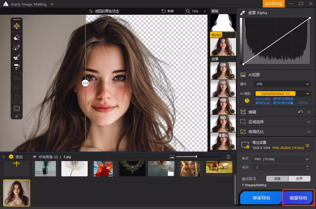 精准Alpha抠图与专业后处理:挑战发丝与透明材质