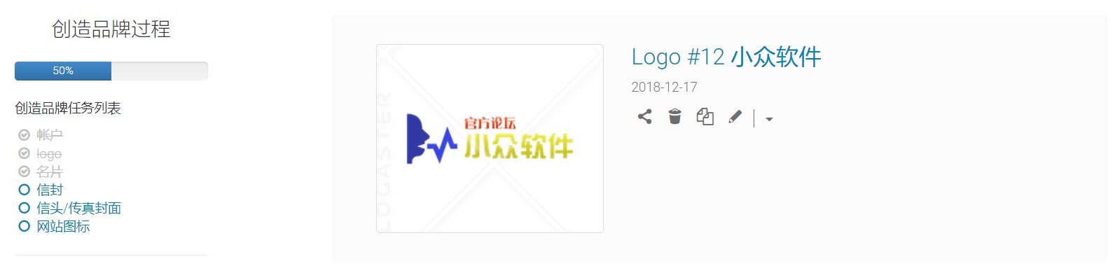 按”倒三角型”标示,有名片、信封、信头/传真封面及网站图标等生成器,制作方式与制作logo一样。