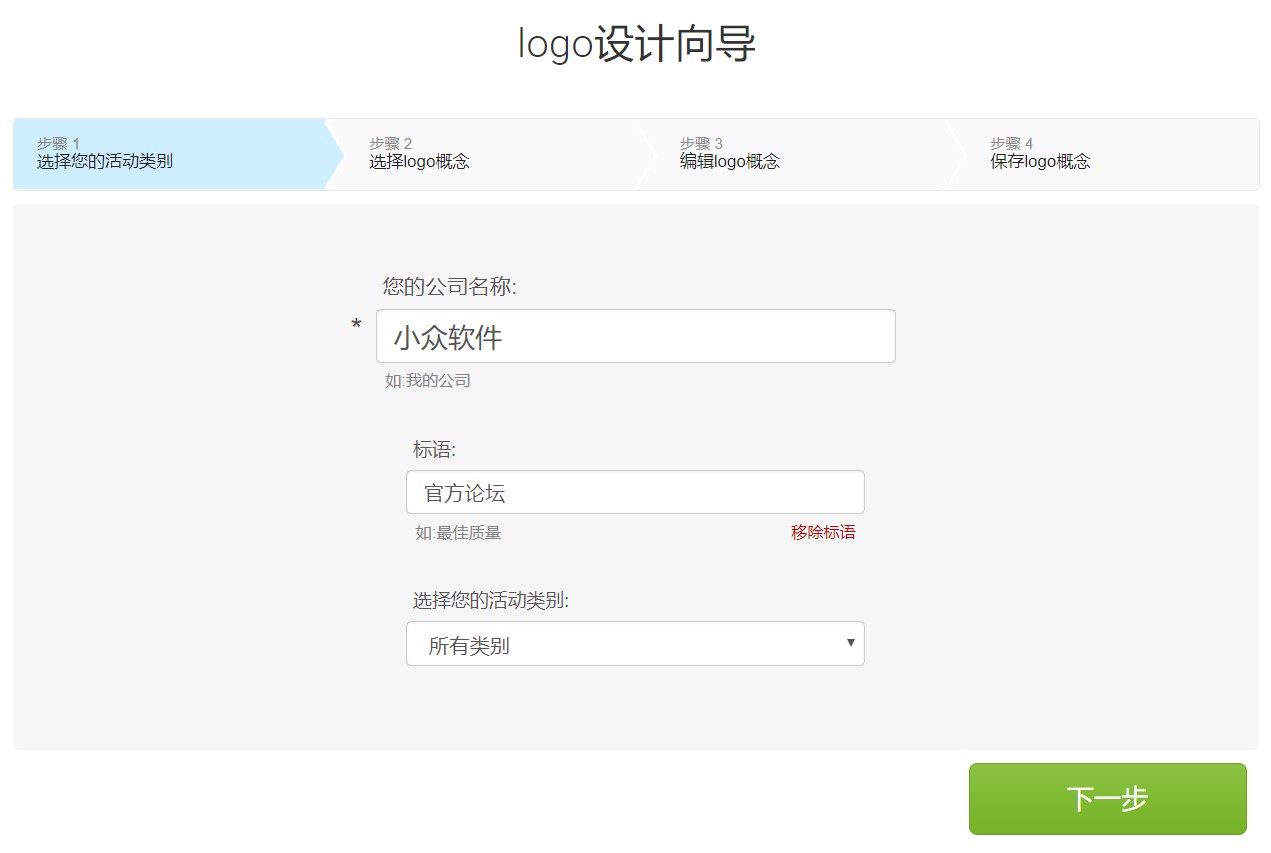 首先,请键入公司名称,不论是公司或部落格名称,只要是想设计LOGO的名称都可以,不拘限狭义的LOGO标志,副标语、种类是选填,脑浮已有设计草槁,建议可选填,可快速由系统自动生成组合。