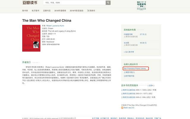 安装后,豆瓣读书页面就可以显示湾区的图书馆了