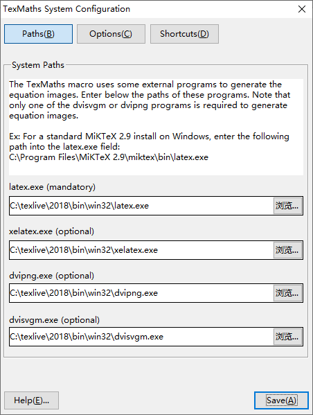 按照网站的提示,我就点击第三个按钮,指定了 latex、xelatex、dvipng、dvisvgm 这四个程序运行的地址。
