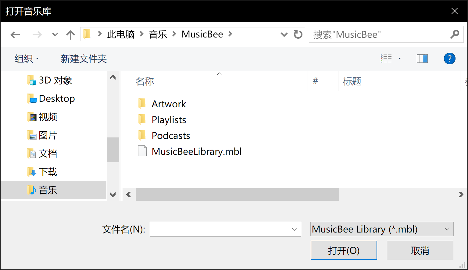 如图,我的音乐库叫MusicBee,这个是我自己命名的,其父文件夹Music是我本来有的文件夹。这里面的mbl文件就是musicbee记录这个音乐库信息的数据库,在musicbee里打开音乐库实际并不是每次打开这个文件夹扫描内容,而是打开这个文件读取信息。我因为用了“整理音乐库”功能所以大家都在一个文件夹里,如果你没有整理过的话这个mbl应该是在默认位置(我推测在用户文件夹音乐文件夹下),与你的音乐位置没有关系。