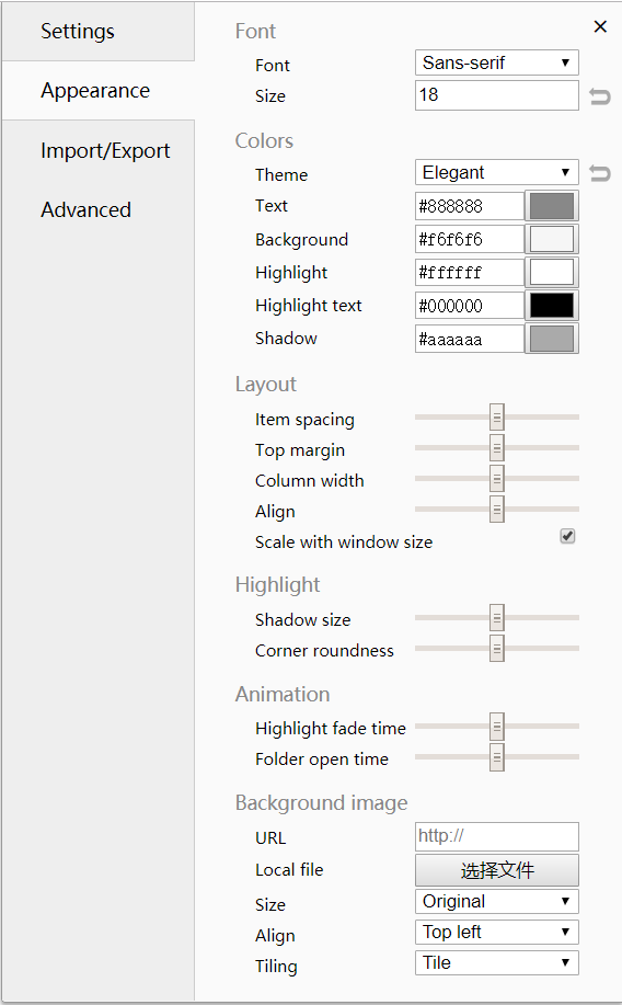 默认可选几个简洁纯色的背景(主题),也可单独设置字体、布局、动画、背景图片等,甚至可以直接通过CSS进行设置~