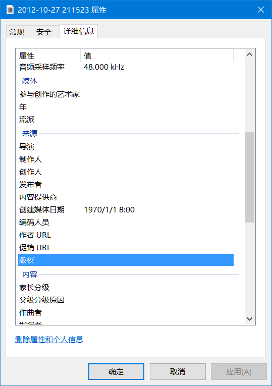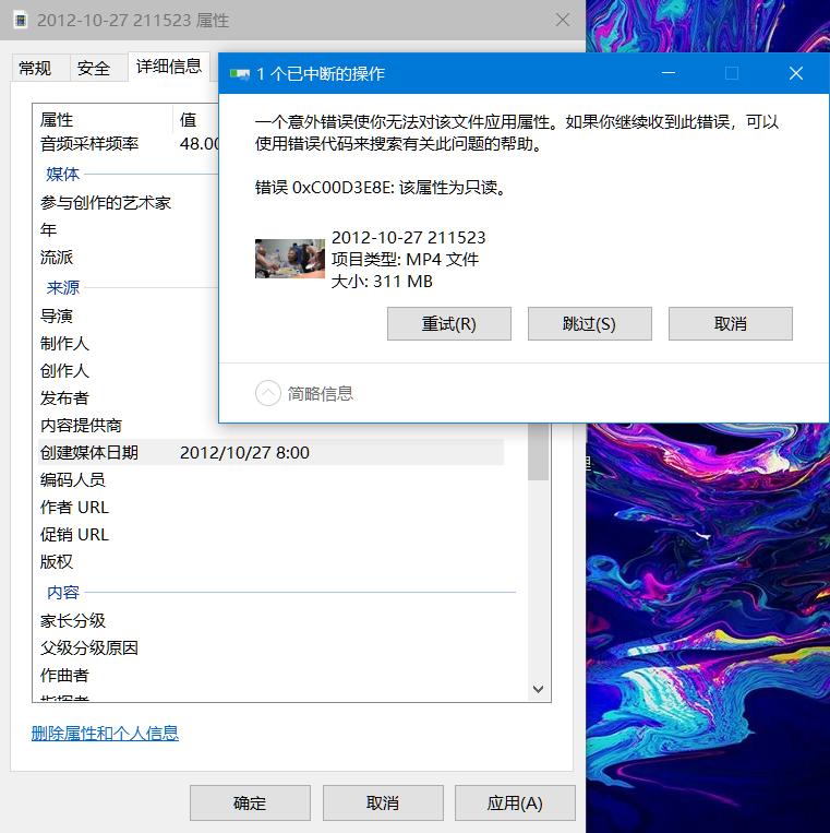 最近发现视频文件属性里的“创建媒体日期”错误(见下图1),变成1970年了,