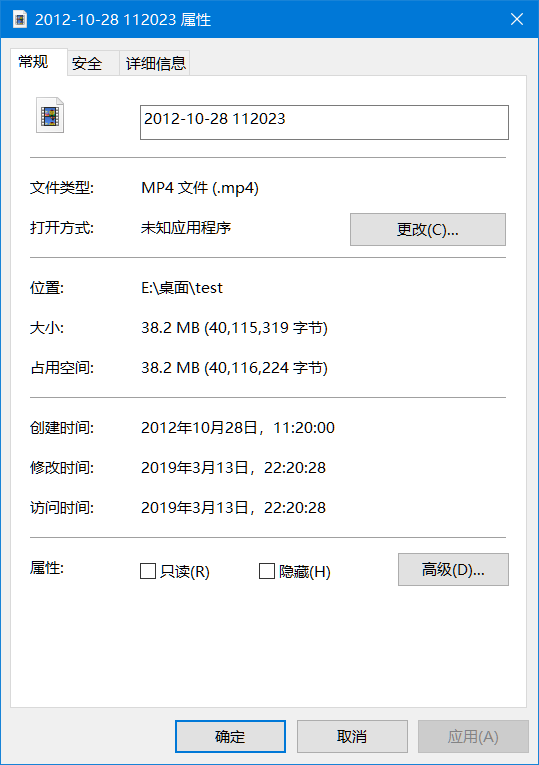 另问一下,MediaCreateDate、TrackCreateDate指的是哪个时间,查看了文件属性里的“常规”卡和“详细信息”卡,均无发现有任何时间修改成对应的那个自定义时间