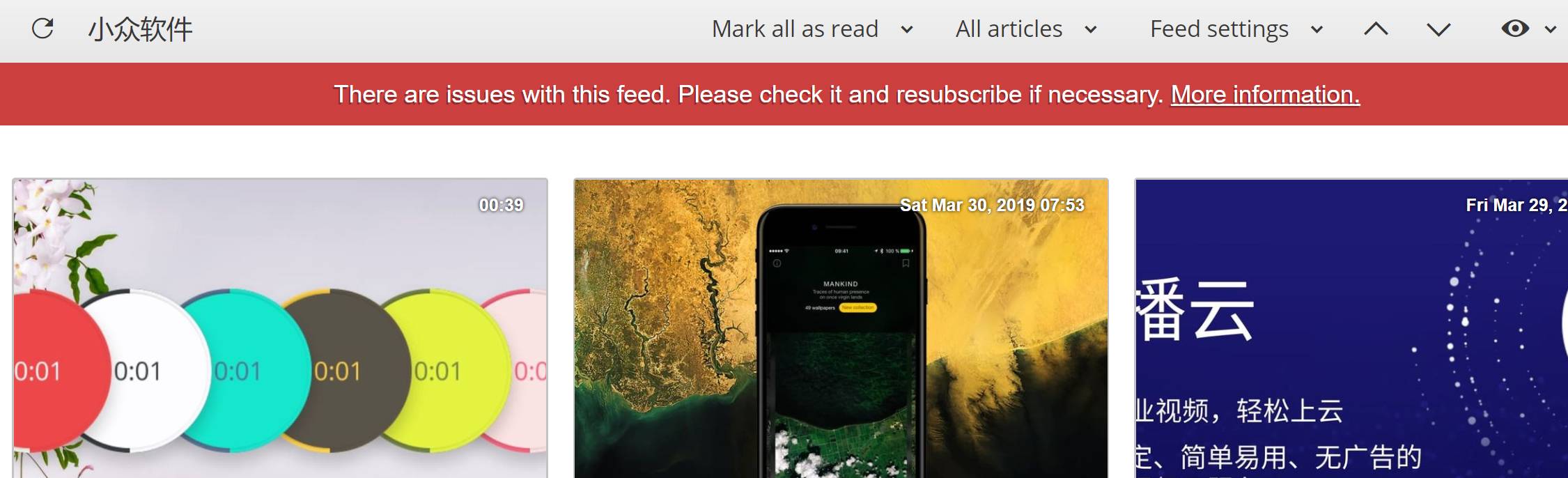 inoreader + reeder没发现问题。