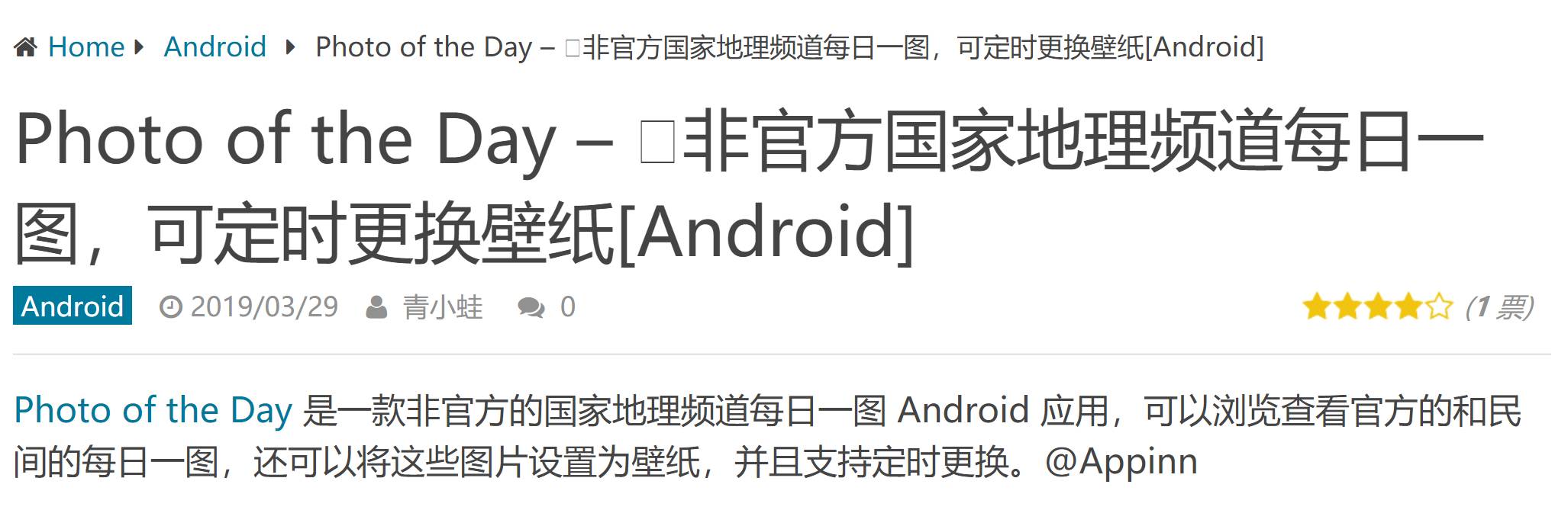 <title>Photo of the Day – 非官方国家地理频道每日一图,可定时更换壁纸[Android]</title>